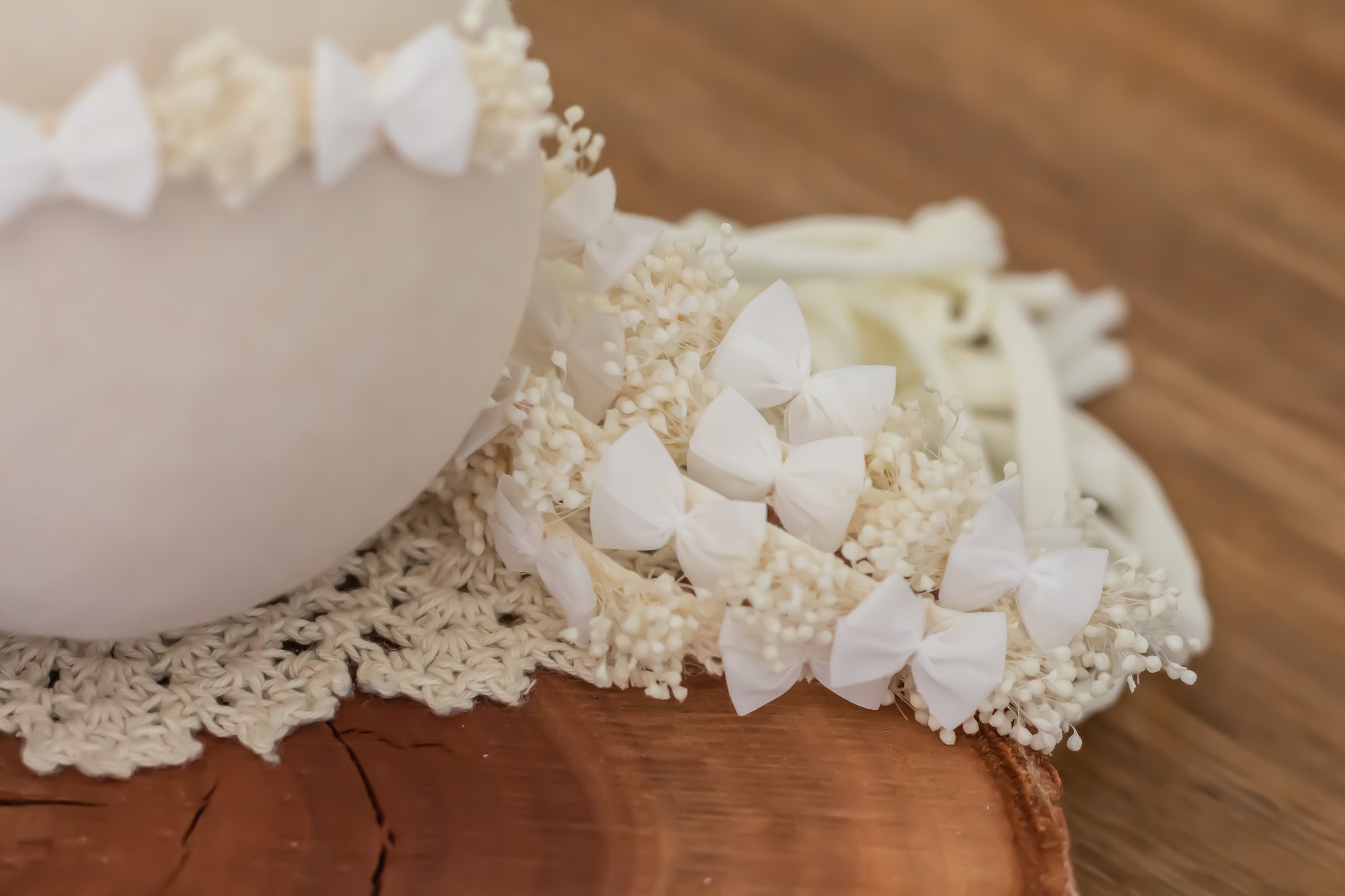 A stretch tieback featuring flowers & mini bows.