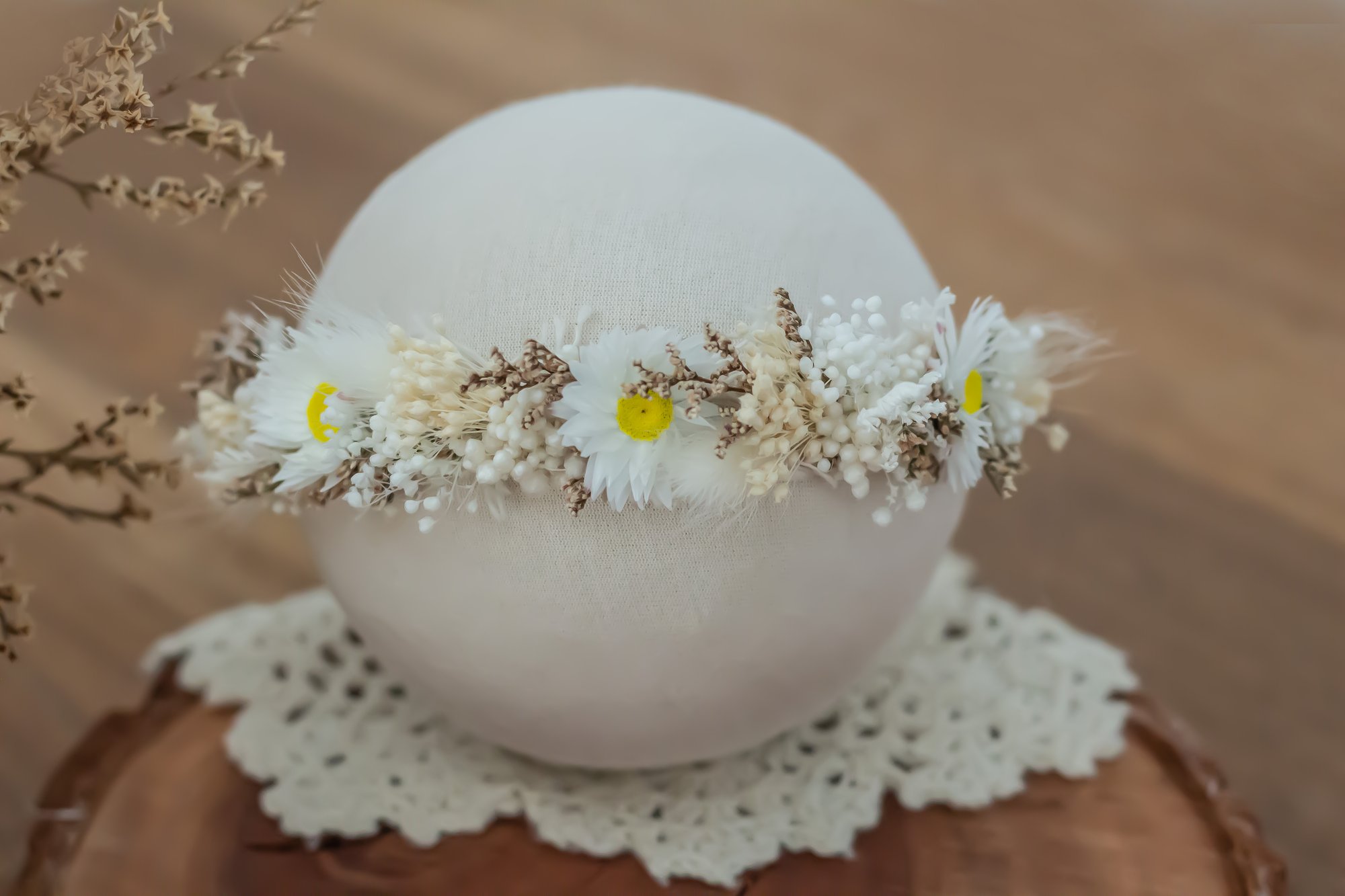 These halo's may flake/change in appearance over time and with continued handling due to the use of real dried & preserved flowers. They are delicate so please handle with care.