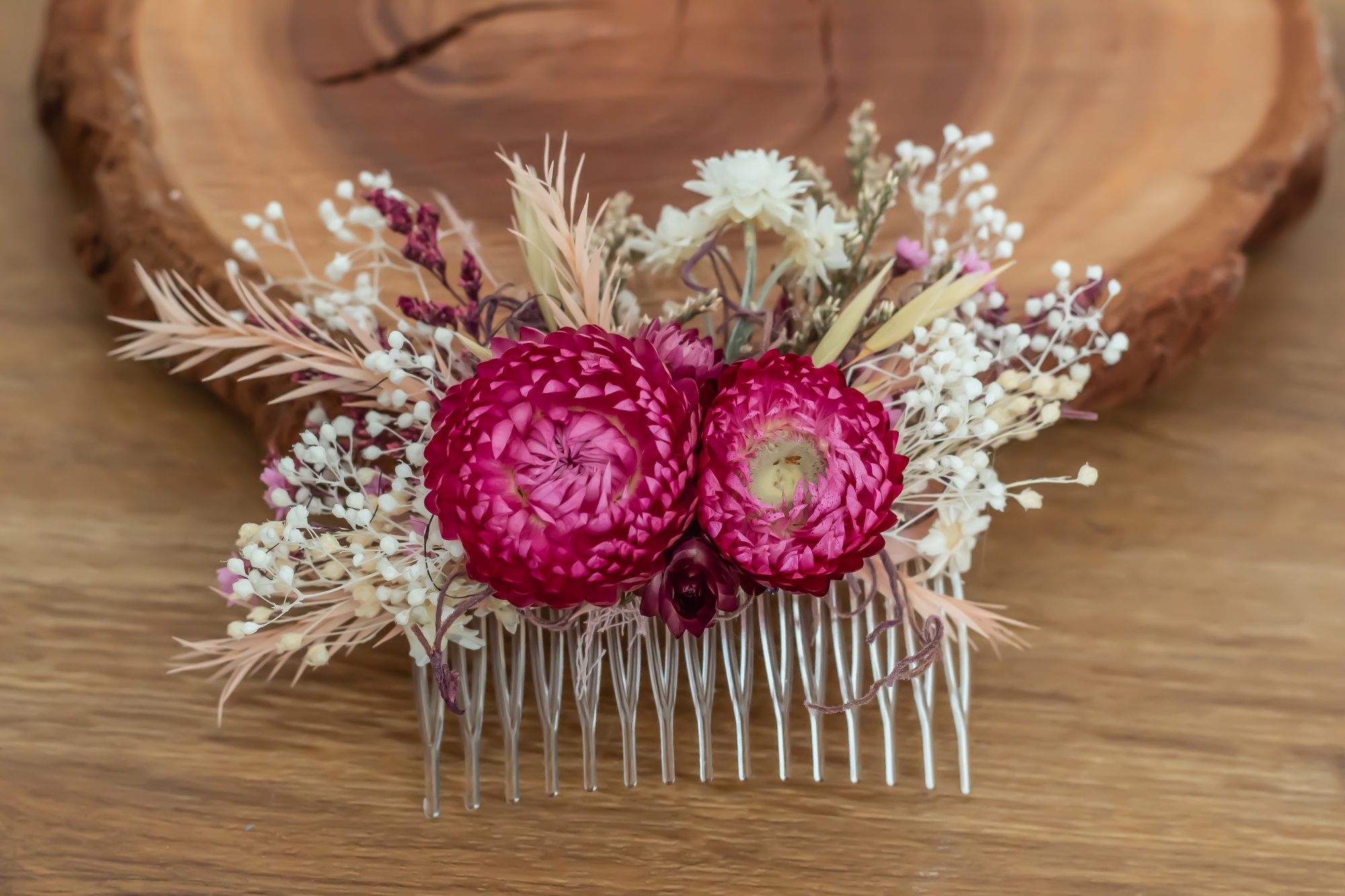These combs may flake/change in appearance over time and with continued handling due to the use of real dried & preserved flowers. They are delicate so please handle with care.