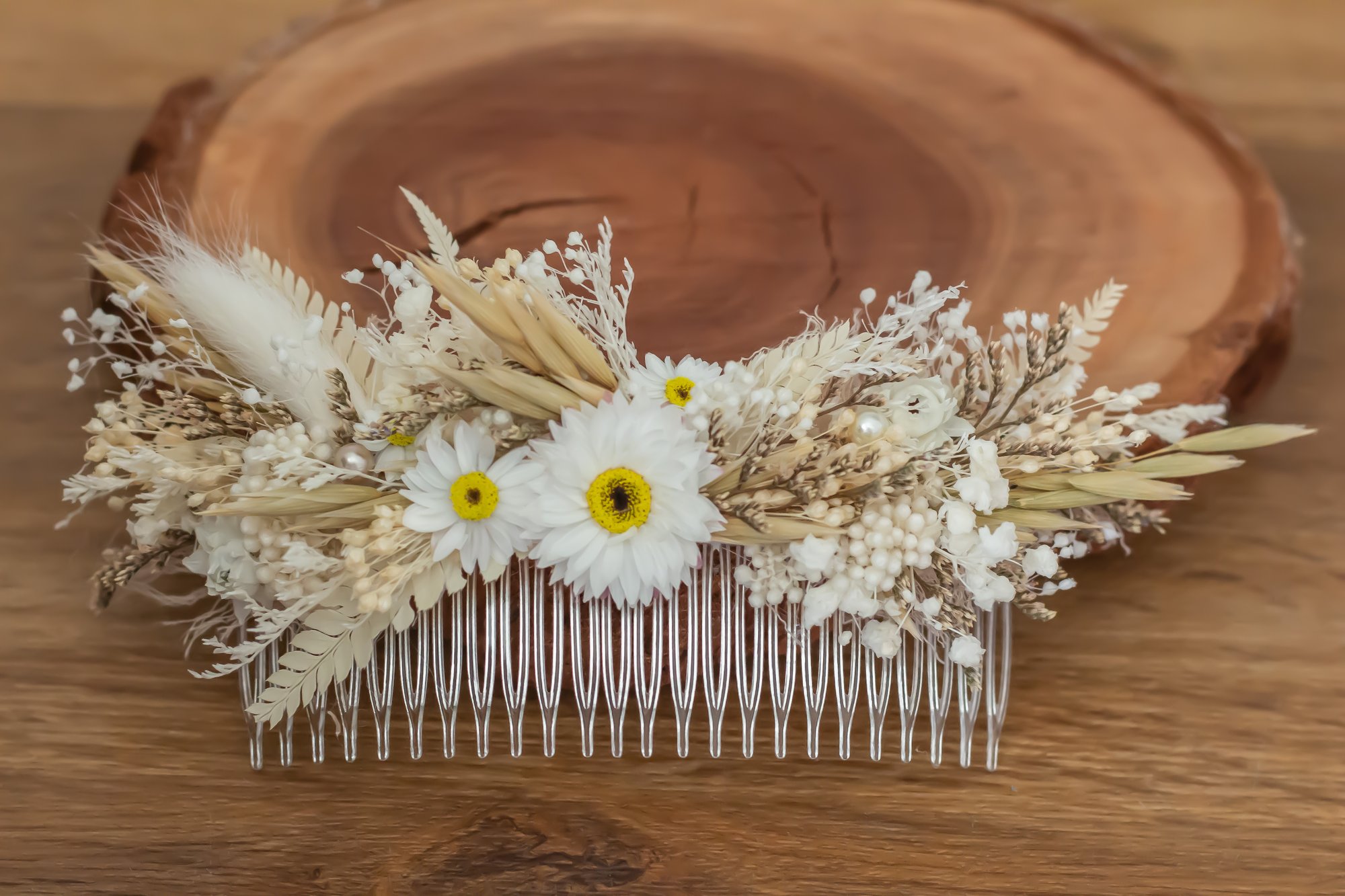 These combs may flake/change in appearance over time and with continued handling due to the use of real dried & preserved flowers. They are delicate so please handle with care.