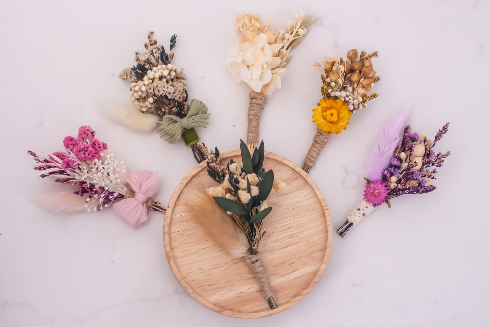 A mini bouquet of preserved & dried flowers, perfect for being held in babies hand during a photoshoot. Bouquet vary but measure approx 8-10cm in height.
