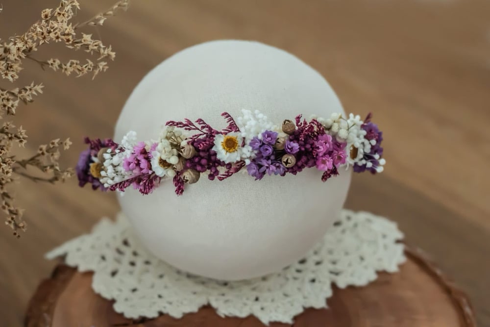 These halo's may flake/change in appearance over time and with continued handling due to the use of real dried & preserved flowers. They are delicate so please handle with care.