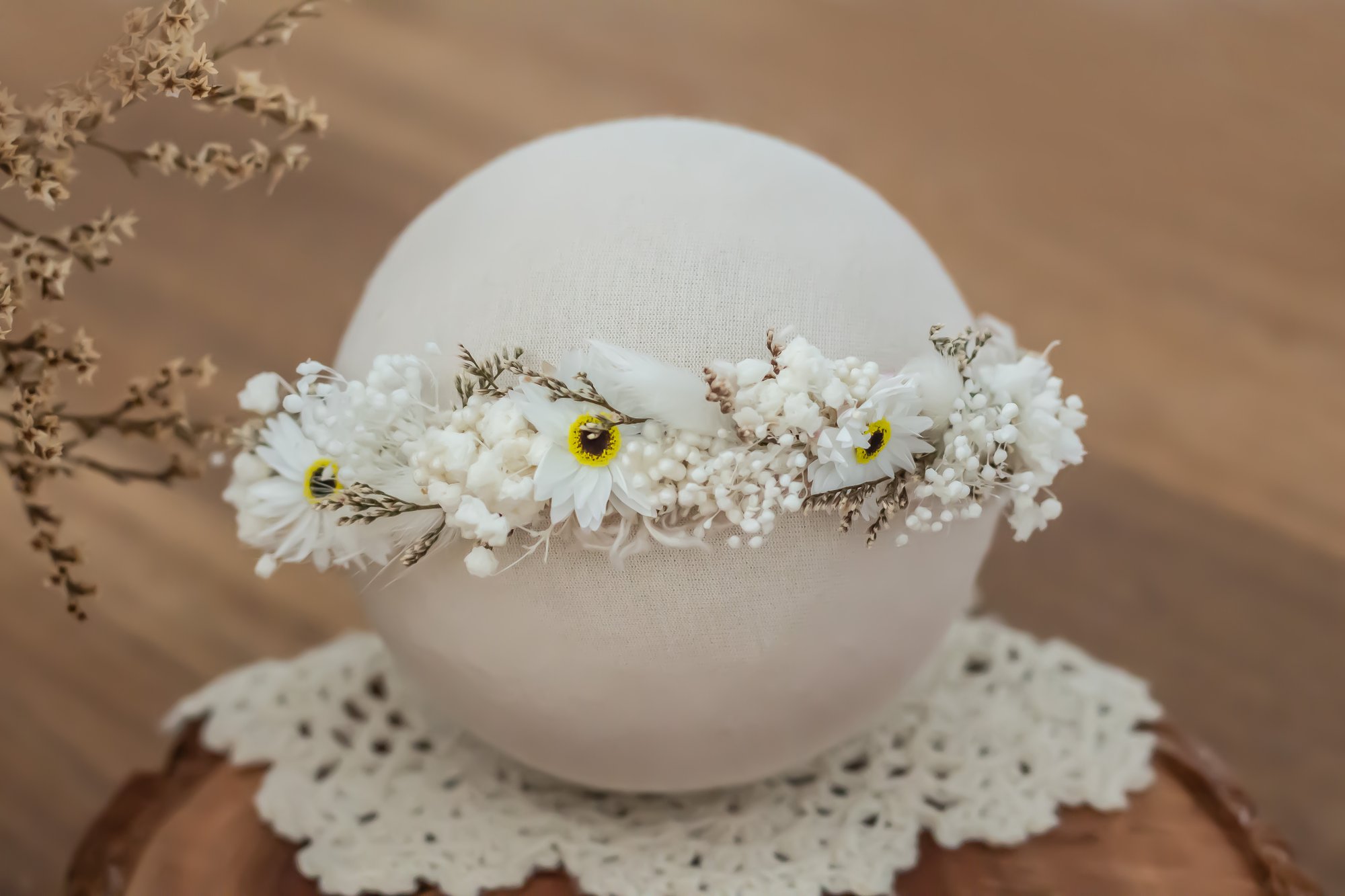 These halo's may flake/change in appearance over time and with continued handling due to the use of real dried & preserved flowers. They are delicate so please handle with care.