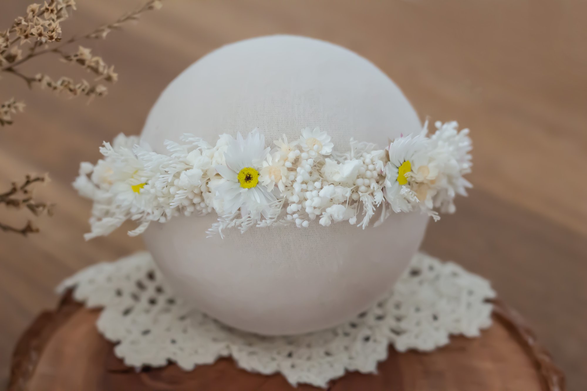 These halo's may flake/change in appearance over time and with continued handling due to the use of real dried & preserved flowers. They are delicate so please handle with care.