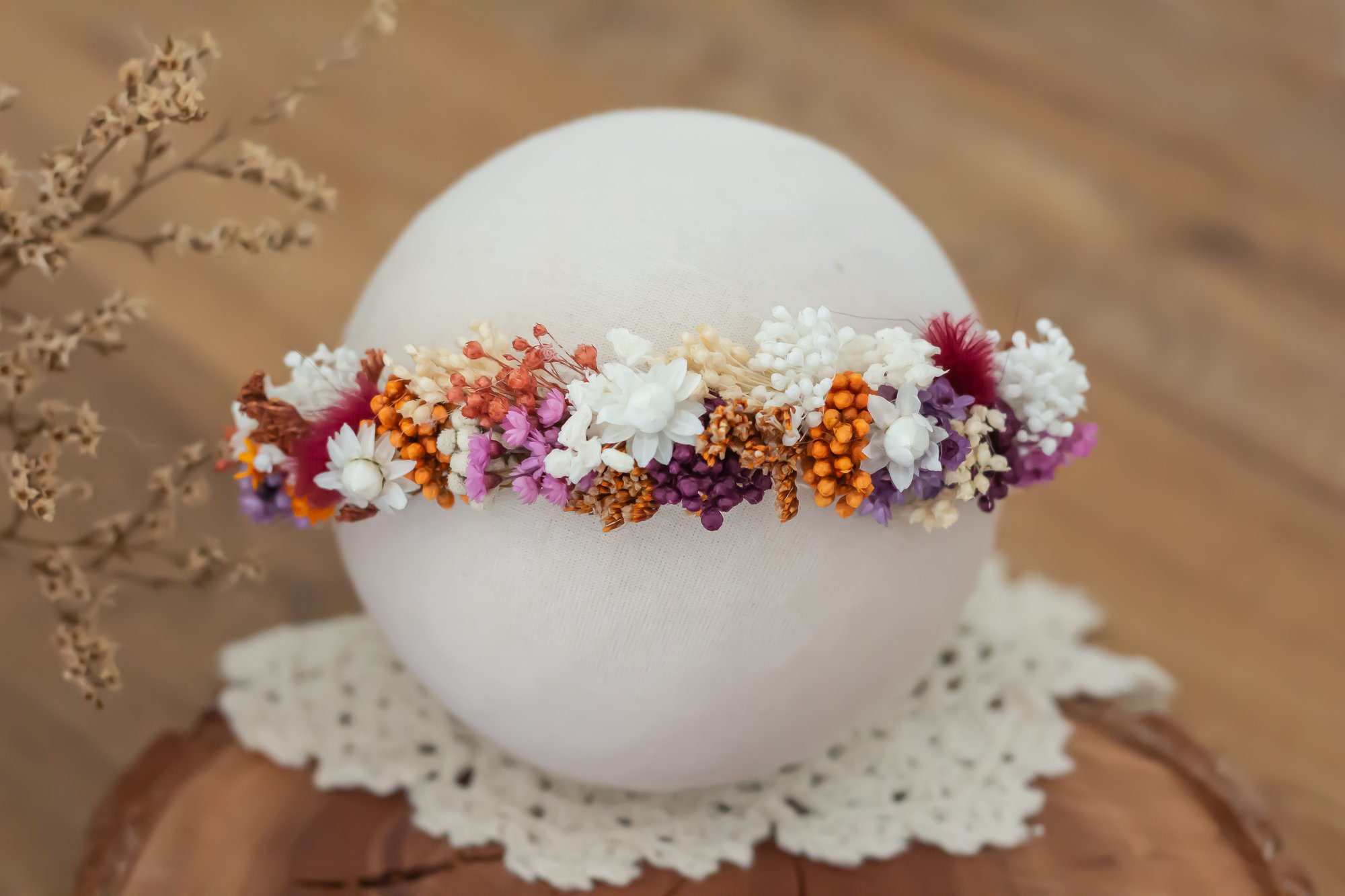 These halo's may flake/change in appearance over time and with continued handling due to the use of real dried & preserved flowers. They are delicate so please handle with care.
