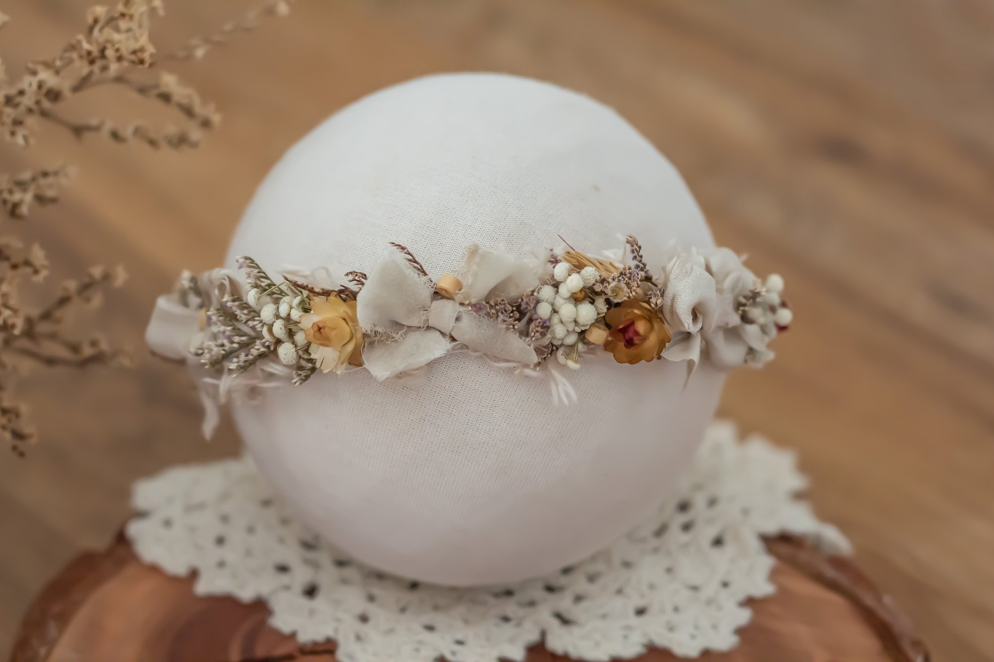 These halo's may flake/change in appearance over time and with continued handling due to the use of real dried & preserved flowers. They are delicate so please handle with care.