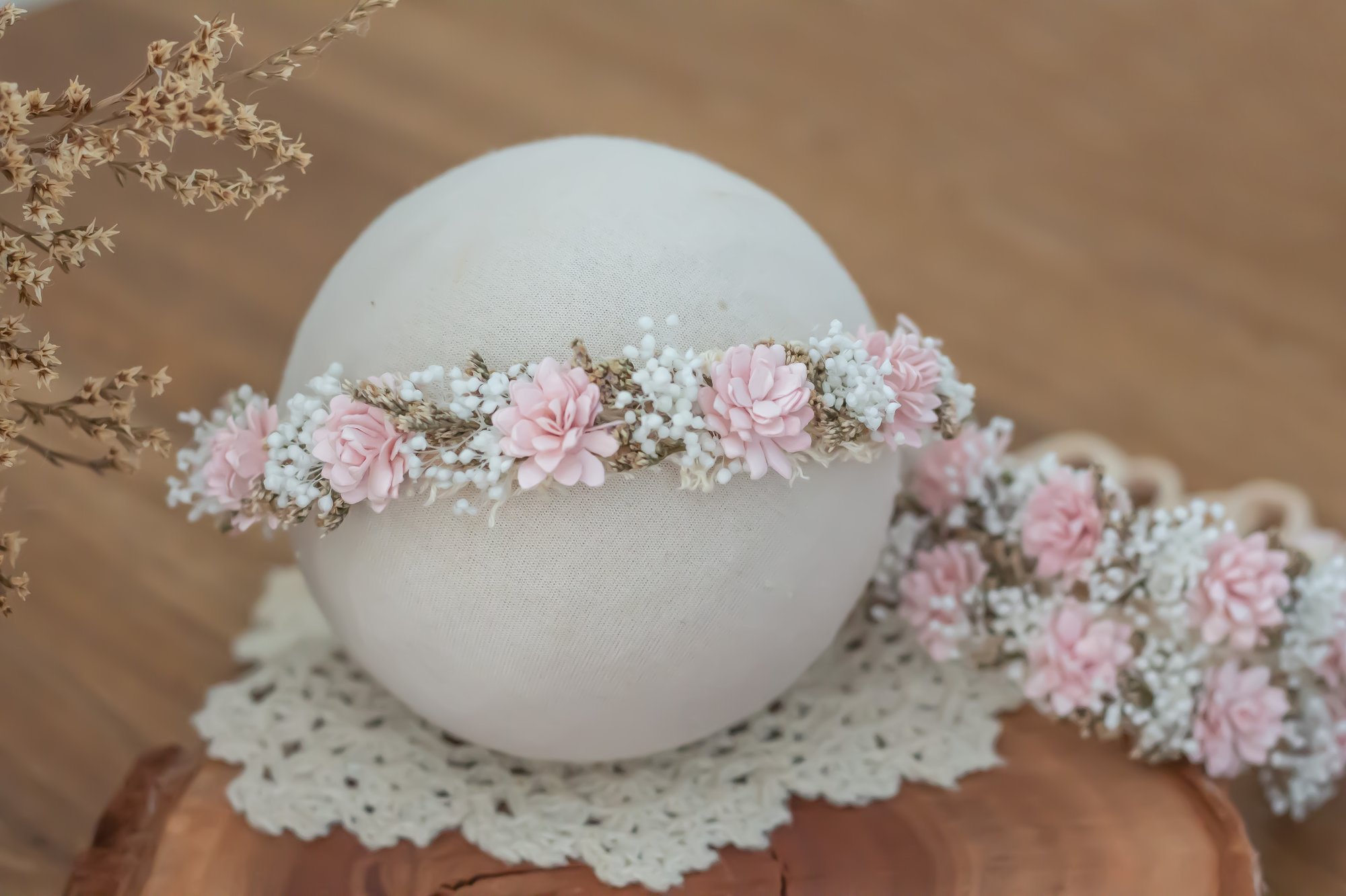 These halo's may flake/change in appearance over time and with continued handling due to the use of real dried & preserved flowers. They are delicate so please handle with care.