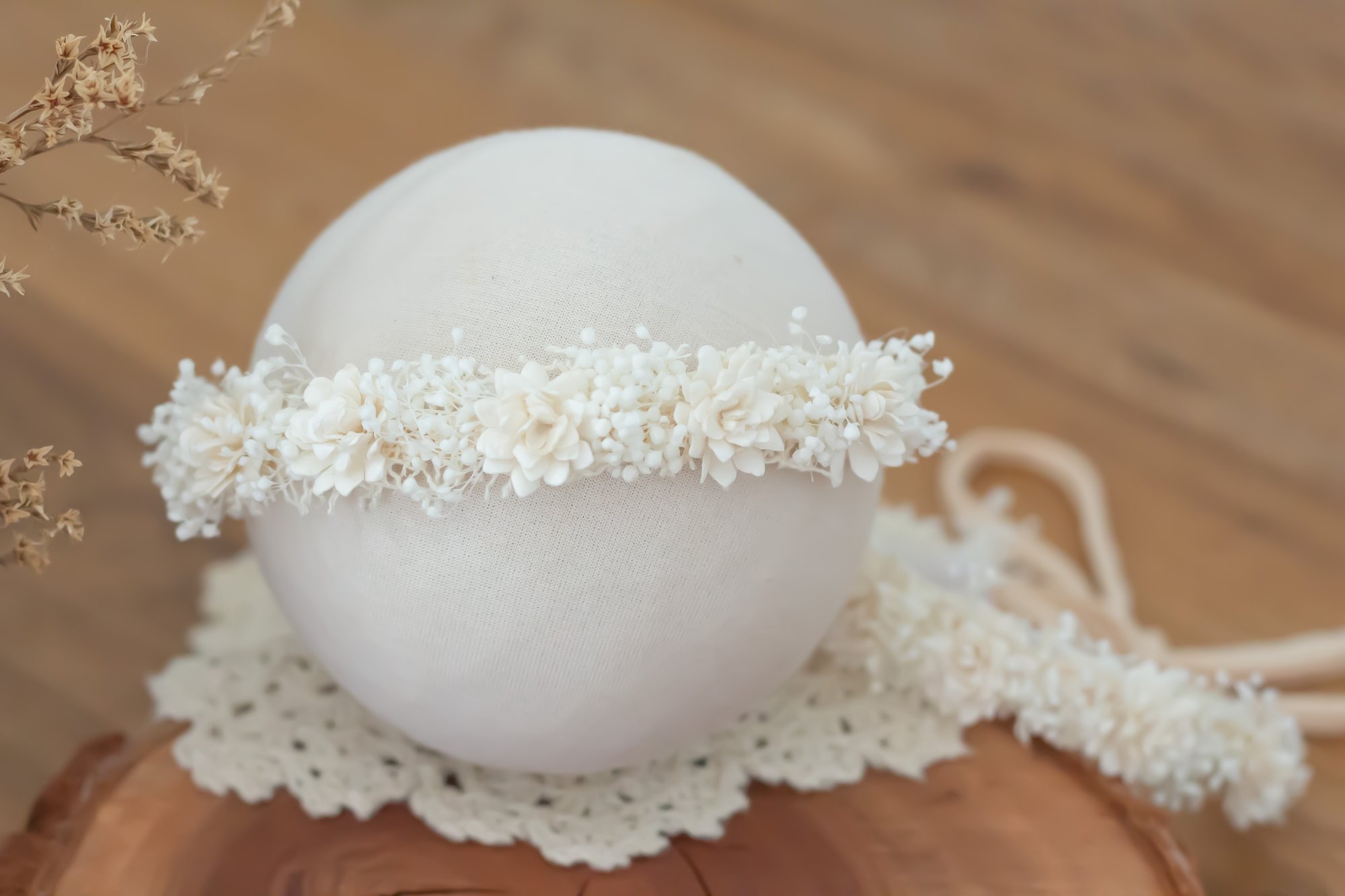 These halo's may flake/change in appearance over time and with continued handling due to the use of real dried & preserved flowers. They are delicate so please handle with care.