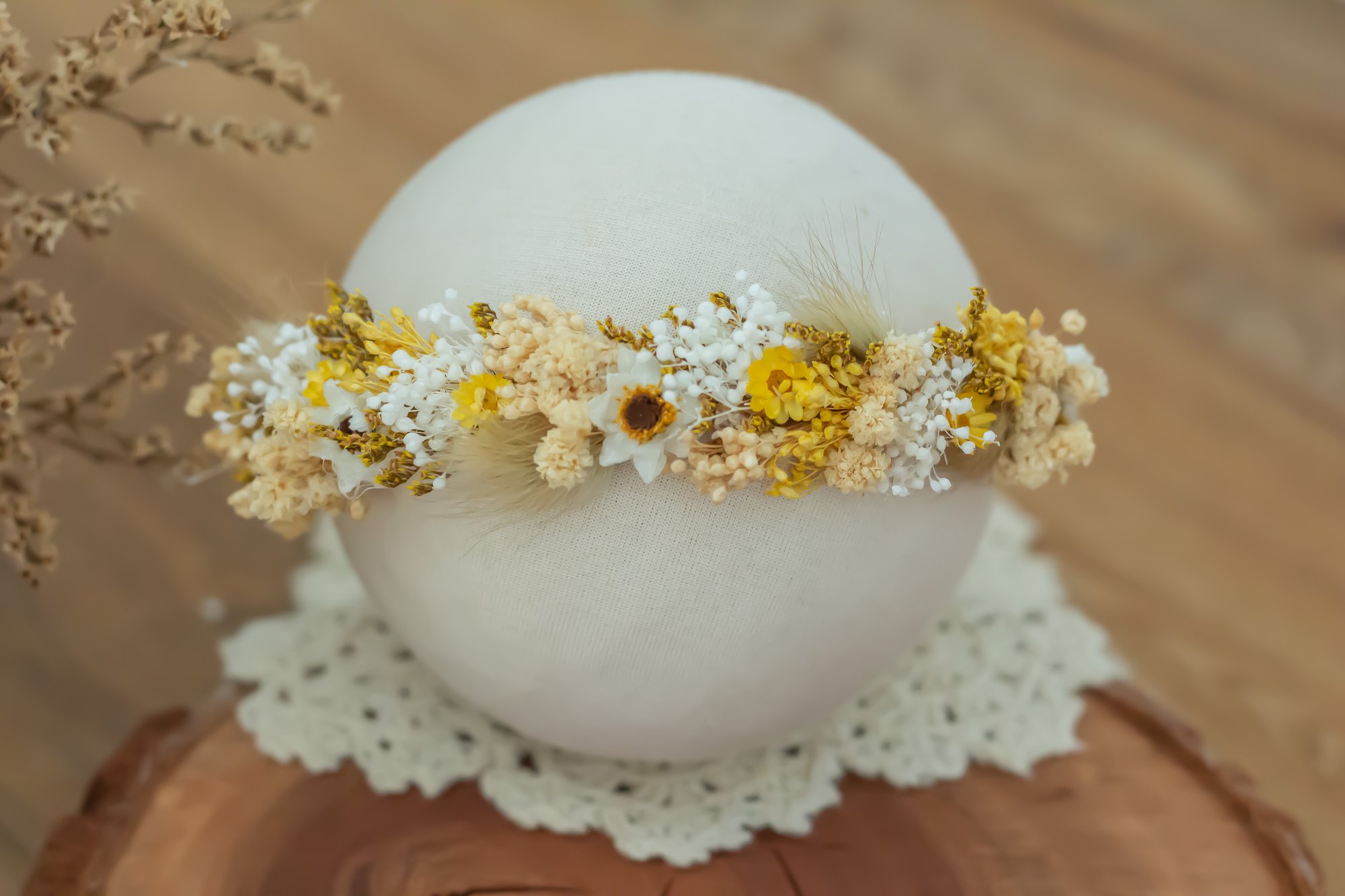 These halo's may flake/change in appearance over time and with continued handling due to the use of real dried & preserved flowers. They are delicate so please handle with care.