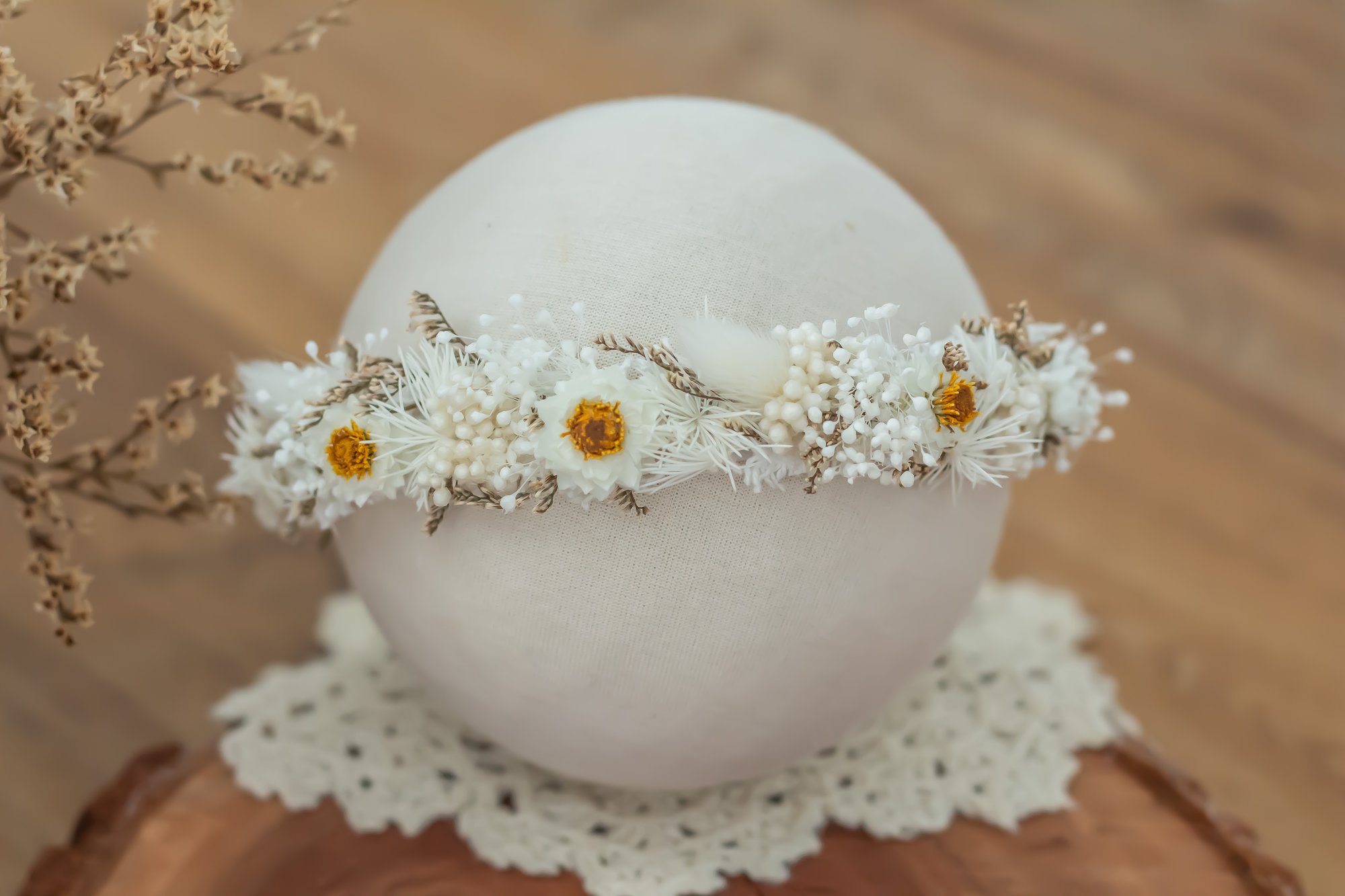 These halo's may flake/change in appearance over time and with continued handling due to the use of real dried & preserved flowers. They are delicate so please handle with care.