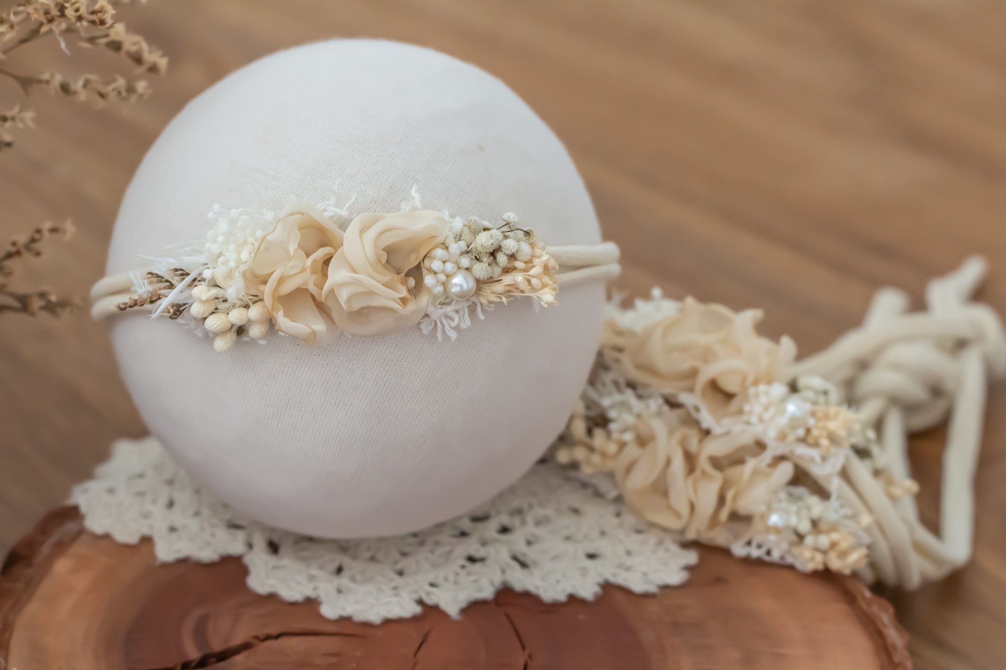 Stretch tieback featuring flowers & hand made petals.
